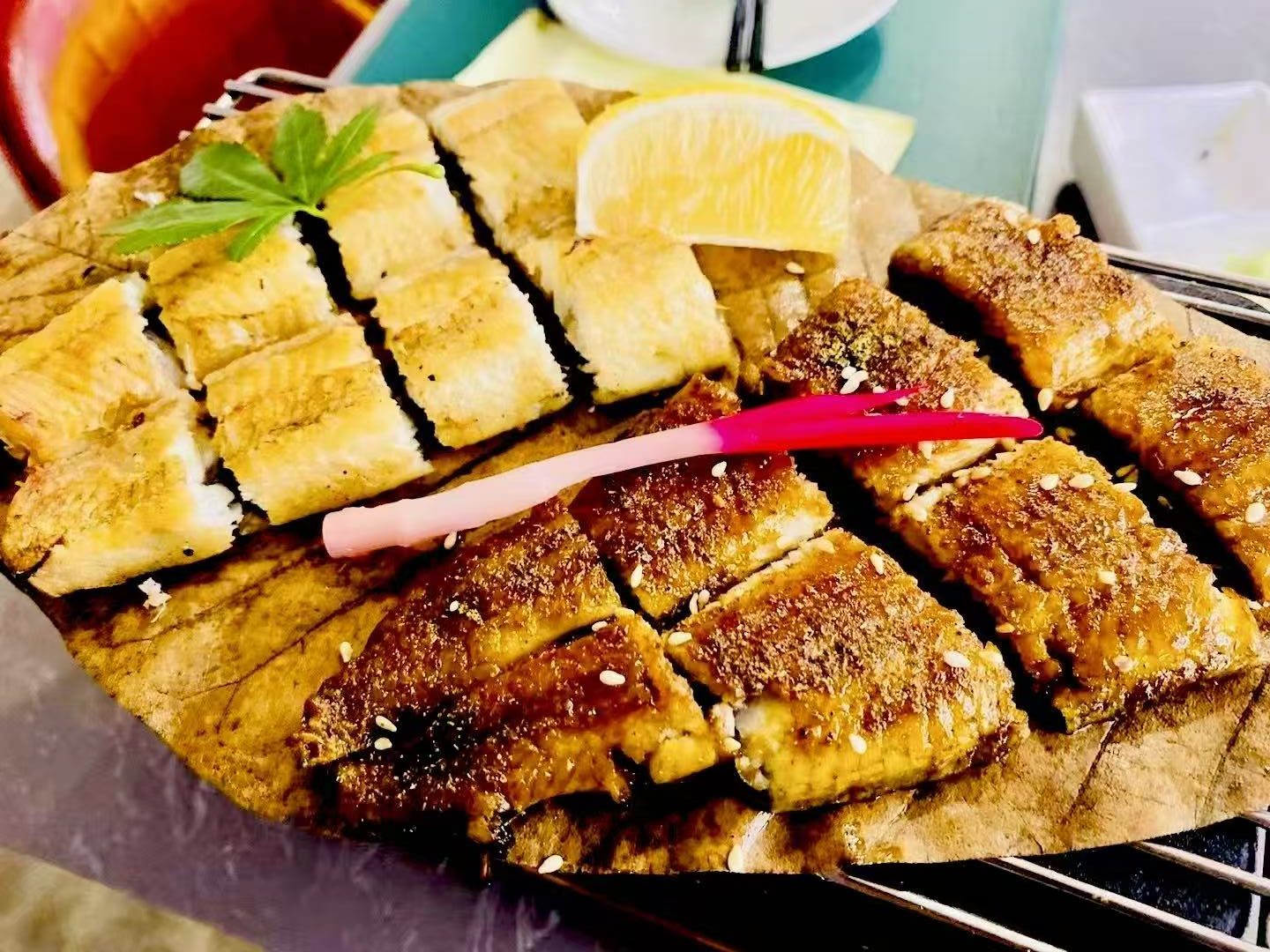 (日本語) 鰻の蒲焼、焼き鳥、和牛ステーキ、地鶏炭火焼柚子胡椒添え、うな重、ひつまぶし |