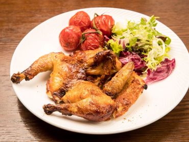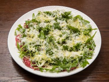 薄切りチーズと生ビーフの盛り合わせ、ハムとベリーの合わせサラダ、バニラ草とレモンのローストチキン、ステーキ、ミートソースパスタ、イタリアチーズハムピザ |