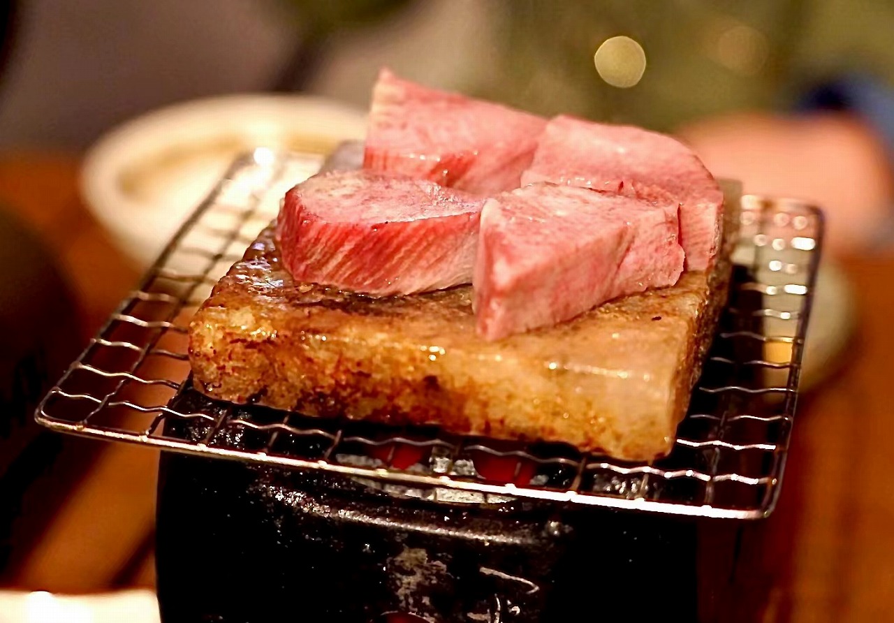 (日本語) 岩塩のプレートで焼く、厚切り和牛極上牛たん、たんユッケや和牛極上たんトロ刺など牛たんメニューが食べれる牛たん専門店。