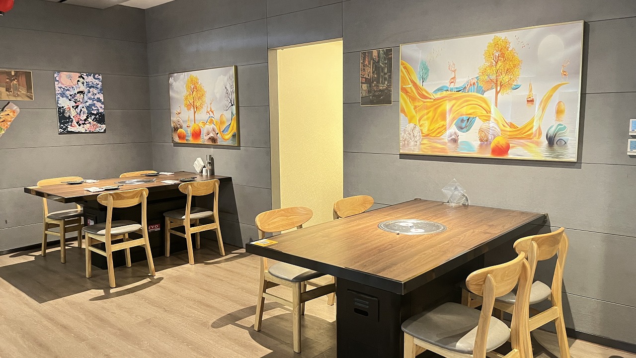 フロアには大スクリーンが完備されているので、スポーツ観戦や焼肉での大人数の打ち上げにも最適。